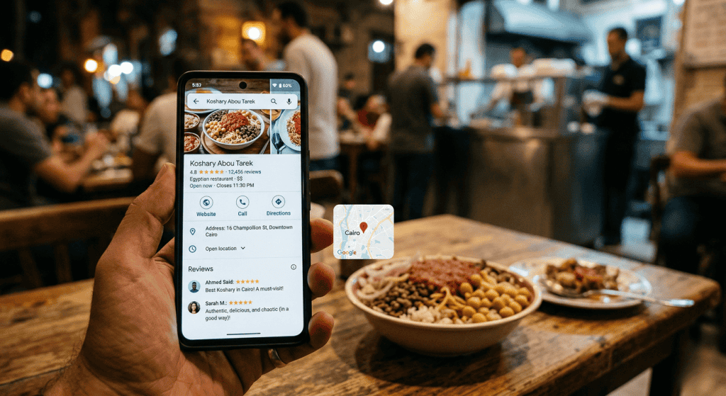 Think about it. When someone types "restaurant near me" or "أفضل مطعم في الشيخ زايد" into Google, they're not browsing — they're deciding. That's the moment you want to show up.
